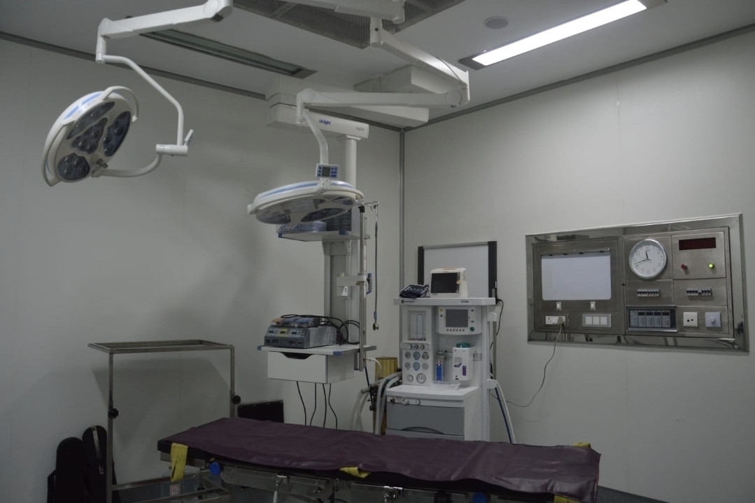 The first floor comprises five operation theatres and an ICU.